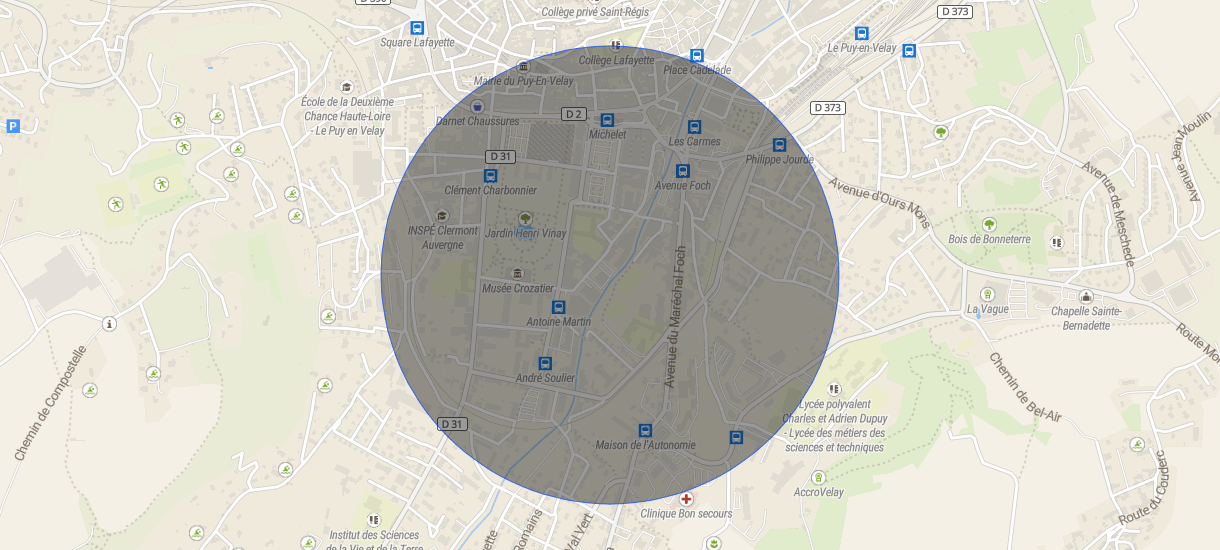 Le Puy à 5 minutes de la Place Michelet à pied.